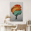Wandbild mit Silbereffekt Baum mit oranger und grüner 3D-Krone - Mielu - Alu-Dibond