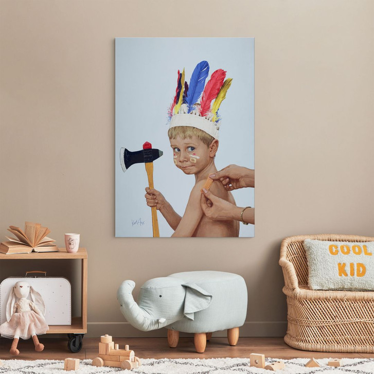 Keine Ausreden mehr für unschöne Wände! Hol dir das Wandbild nach Hause und sorge für einen aufregenden Look! Diese Titelbild-Illustration aus „Hörzu“ zeigt einen als Indianer verkleideten Jungen. Nach dem Motto: Ein Indianer kennt keinen Schmerz, bleibt er auch nach einer Verletzung tapfer. Dieses Alu-Dibond-Bild harmoniert wunderbar mit dem Thema Kunst und kann dank seiner hochwertigen Beschichtung auch im Aussenbereich, wie auf Balkonen und in Gärten, eingesetzt werden. Das Material ist leicht und gleichzeitig formstabil. Die seidenmatte Oberfläche verleiht dem Motiv eine besondere Optik. Der König der Titelbilder – diesen Titel verdankt er dem berühmten Illustrator Kurt Ard, der über Jahrzehnte hinweg unzählige Titelbilder für Deutschlands erste Fernsehzeitschrift HÖRZU und verschiedene internationale Zeitschriften entwarf. Mit seiner Art, menschliche Charaktere und Szenen des Alltags einzufangen, begeisterte er Woche für Woche Millionen von Lesern und trug so auch zum unvergleichlichen Erfolg von HÖRZU bei. Kleine Momente, mit leisem Humor und Liebe zum Detail eingefangen, stehen im Mittelpunkt seiner Werke und zeigen ihn als scharfen Beobachter, der seine Figuren nie blossstellt, sondern das Menschliche und Liebenswerte in den Vordergrund rückt. Seine Bilder erzielen heute auf Auktionen Höchstpreise und sind einzigartige Zeitdokumente.