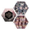 Wandbild Set Fredriksson - Geometrie in Violett und Gold - Alu-Dibond Hexagon (3-teilig)