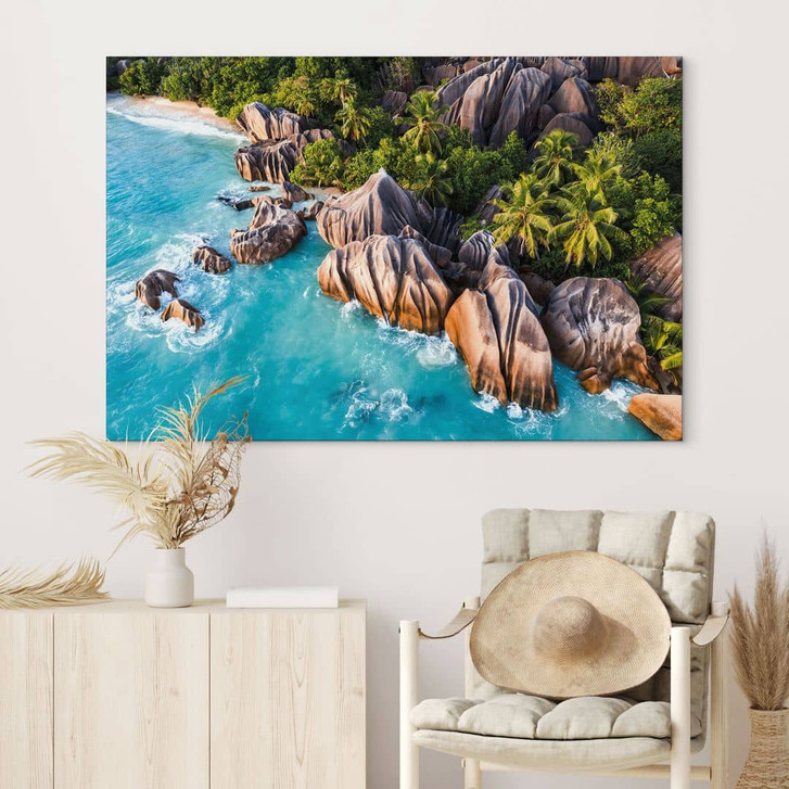Wandbild Tropische Felsenküste der Seychellen - Colombo - Alu-Dibond