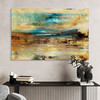 Tauche ein in die faszinierende Welt von Natalie Fedras Kunstwerk „Visite“. Dieses abstrakte Gemälde besticht durch seine ausdrucksstarken Farben und dynamischen Pinselstriche, die eine beeindruckende Tiefenwirkung erzeugen. Die fliessenden Übergänge von warmen Erd- und Goldtönen zu kühlen Blau- und Türkistönen wecken Assoziationen an weite Landschaften und endlose Himmel. Gleichzeitig bleibt die Interpretation des Motivs ganz dem Betrachter überlassen, was dem Werk eine besondere Vielschichtigkeit verleiht.