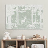 Dieses Motiv ist besonders wirkungsvoll in einem Kinderzimmer: Die ruhigen Grüntöne schaffen eine entspannte, natürliche Atmosphäre, die zum Träumen und Entdecken einlädt. Die weichen Konturen und harmonischen Farben fördern eine beruhigende Umgebung, ideal für erholsame Nächte und fantasievolle Abenteuer. Ob über dem Bett aufgehängt oder als zentrales Dekorationselement verwendet, diese Waldszene schafft einen Raum, in dem sich Kinder geborgen fühlen.