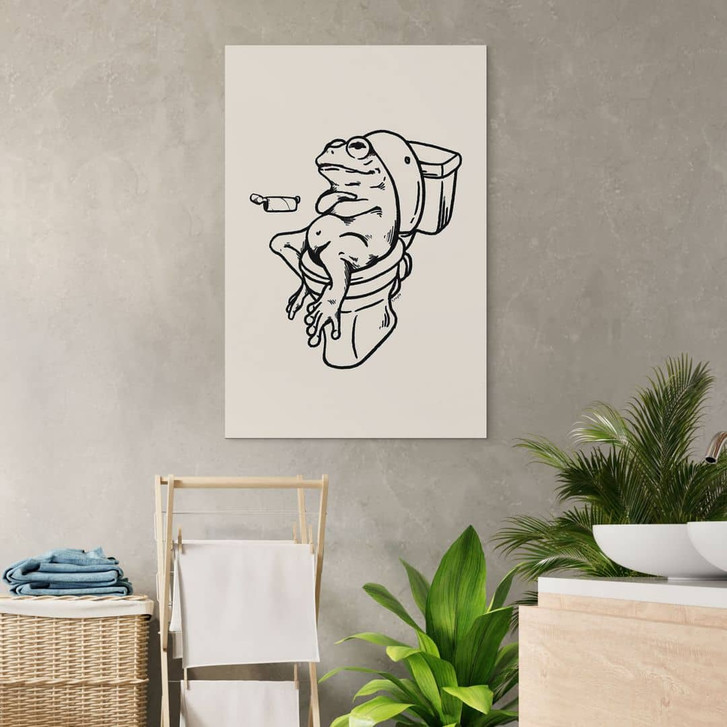 Dieses aussergewöhnliche Motiv der Künstlerin Tara Royle bringt humorvolle Leichtigkeit in deine Räume. Der verschmitzte Frosch, der es sich auf dem stillen Örtchen gemütlich gemacht hat, verleiht deinem Badezimmer oder Gäste-WC eine charmante und witzige Note. Mit seinem entspannten Gesichtsausdruck und seiner witzigen Pose zaubert das Bild garantiert jedem Betrachter ein Lächeln ins Gesicht.