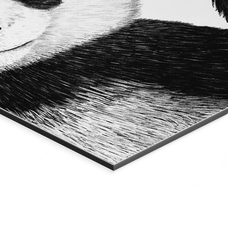 Dieses Kunstwerk aus Aluminium-Dibond der talentierten Künstlerin Valeriya Korenkova zeigt einen charmanten Panda, der mit seiner flauschigen Pfote winkt. Mit seinen warmen, freundlichen Augen und seinem verspielten Ausdruck bringt dieses Motiv eine besondere Leichtigkeit in Ihre Räume. Das minimalistische Design in Kombination mit den fein ausgearbeiteten Details verleiht dem Werk eine zeitlose Eleganz.