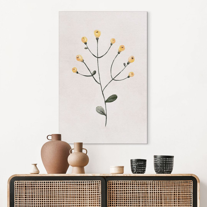 Wandbild Zarte Pflanze mit gelben Blüten - Goed Blauw - Alu-Dibond