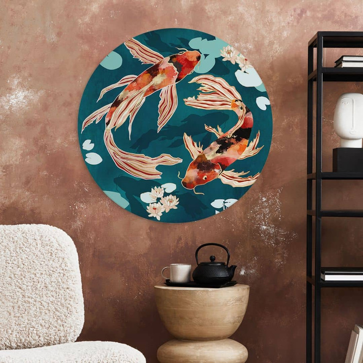 Wandbild Zwei Kois im Teich - SpaceFrog Designs - Alu-Dibond - Rund