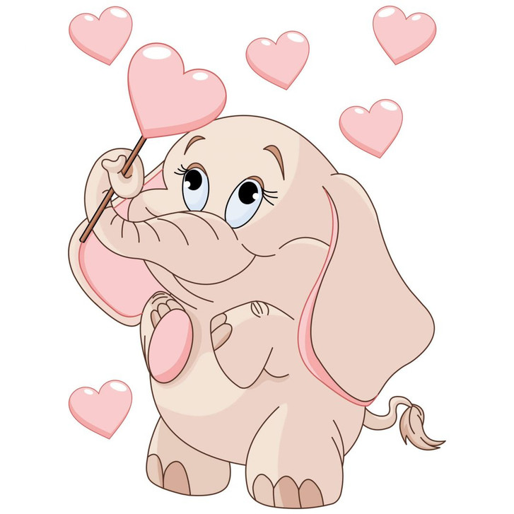 Wandsticker Elefantenbaby mit Herzen (rosa) + Leuchtsticker