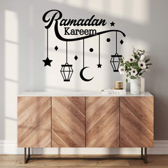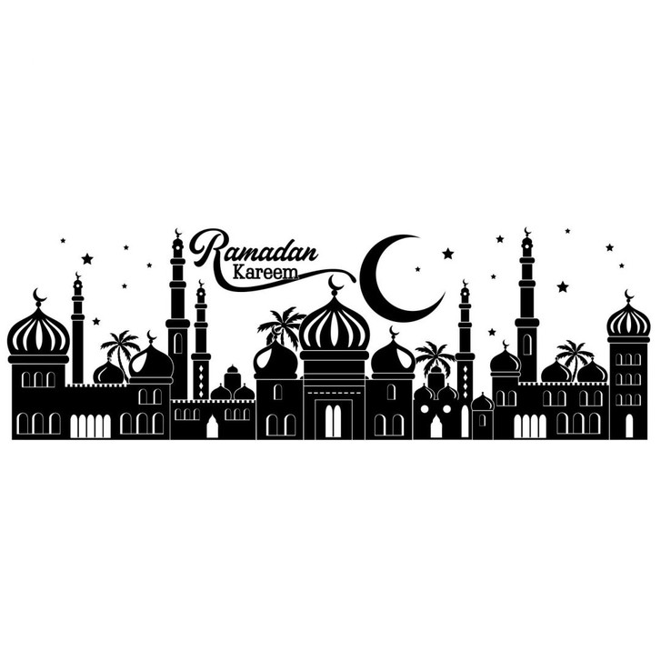 Verwandle deinen Wohnbereich in einen beruhigenden Ort, an dem du es dir mit unseren besonderen Designs gemütlich machen kannst. Der Wandaufkleber zeigt die Silhouetten von fünf verschiedenen Moscheen. Darüber befindet sich ein Halbmond und die Aufschrift „Ramadan Kareem“. Gesegneter Ramadan: Mit diesen Worten wünschst du deiner Familie, deinen Freunden und Bekannten zu Beginn der Fastenzeit einen grosszügigen Ramadan.