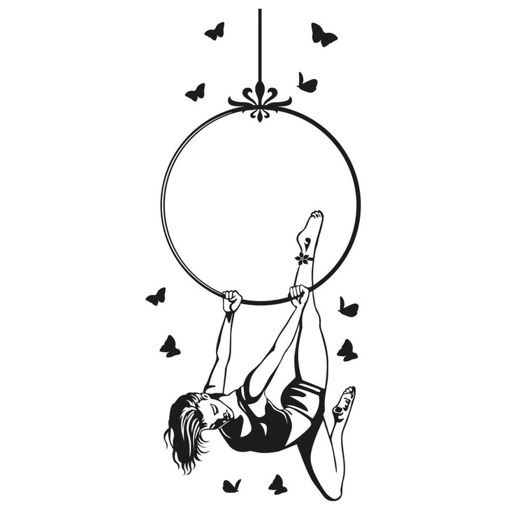 Der Tanz im hängenden Reifen erfordert hartes Training, Kraft und viel Ausdauer. Der Wandtattoo Künstler 2 gibt einen Einblick in die vielen anmutigen Figuren und Bewegungen, die bei dieser Art von Artistik entstehen. Leicht wie ein flatternder Schmetterling bewegt sich die grazile Künstlerin auf dem Wandsticker mit und um ihren Reifen. Das beeindruckende Gesamtbild dieses Wandstickers lässt das Herz jedes Betrachters höher schlagen, insbesondere wenn er sich für Ballett, Tanz und Akrobatik begeistert. Sowohl im Wohnzimmer als auch im Schlafzimmer ist der Wandtattoo-Künstler 2 ein schöner Blickfang.