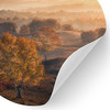 Dieser runde Wandsticker von Yuan Cui bringt die friedliche Schönheit eines goldenen Morgens in dein Zuhause. Die sanften Sonnenstrahlen breiten sich über die hügelige Landschaft aus, während der feine Nebel eine verträumte Stimmung erzeugt. Helle Birken setzen warme Akzente und schaffen eine harmonische Atmosphäre.