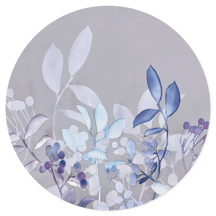 Dieser runde Wandsticker von Andrea Haase bringt florale Leichtigkeit und sanfte Aquarellkunst direkt an deine Wände. Die zarten Pflanzenmotive in Blau- und Violetttönen, kombiniert mit einem dezenten grauen Hintergrund, schaffen eine beruhigende und natürliche Atmosphäre in jedem Raum. Die filigranen Blätter und Beeren verleihen dem Wandsticker einen eleganten und modernen Look.