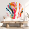 Dieser runde Wandsticker besticht durch seine kräftigen Farben und die dynamische, fliessende Marmorierung. Lebendige Farbtöne in Pink, Orange, Blau und Gold fügen sich harmonisch zu einer energiegeladenen, abstrakten Komposition zusammen. Die sanften Farbverläufe erzeugen eine besondere Tiefe und Dynamik, die jeden Raum in eine Galerie für moderne Kunst verwandeln.
