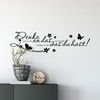 Romantisch akzentuiert wird das Motiv mit Frühlingsblumen und fliegenden Schmetterlingen. Eine geschwungene Linie mit einer Reihe von Punkten rundet das insgesamt sehr harmonische und ästhetische Design ab. Unterstreiche diese Lebensweisheit mit dem tollen Schriftbild in deiner Lieblingsfarbe an deiner Wand und zaubere ein wenig Leichtigkeit und Schönheit in dein Wohnumfeld.