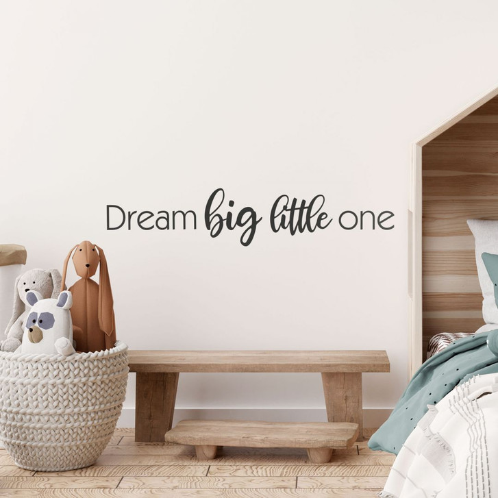 Haltet eure Hoffnungen und Träume an eurer Wand fest! Mit dem süssen Spruch „Dream big little one“ könnt ihr beispielsweise ein Kinderzimmer stilvoll und liebevoll gestalten.