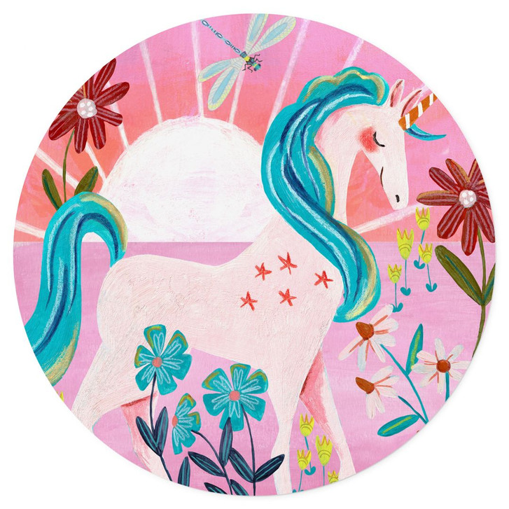 Wandtattoo Einhorn auf farbenfroher Blumenwiese - Bonne Müller - Rund