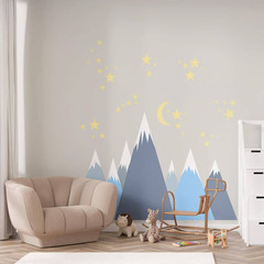 Dieses Wandtattoo lässt sich ganz einfach in jedem Raum anbringen. Ob im Jugend- oder Kinderzimmer: Mit diesem Wandaccessoire setzt du wunderbare Akzente, die begeistern. Durch die einfache Anbringung sparst du Zeit und Mühe. Die einzelnen Berge und Wolken kannst du nach Belieben an der Wand anordnen. Viel Spass beim Dekorieren!