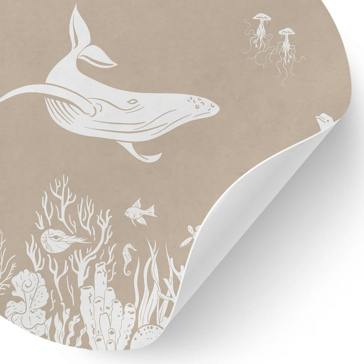 Bringe die sanfte Schönheit des Ozeans mit diesem runden Wandsticker an deine Wand. In natürlichen, warmen Tönen schafft das Motiv eine ruhige und harmonische Atmosphäre. Die detaillierten, weissen Illustrationen heben sich elegant vom sanften Hintergrund ab und machen dieses Design zu einem stilvollen Akzent für jedes Zuhause.