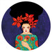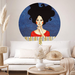 Wandtattoo Frau mit roter Blütenkrone und Vogel - Hülya - Rund