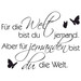 Für jeden Topf gibt es einen Deckel – diese Aussage spiegelt sich auch in diesem Wandtattoo wider: „Für die Welt bist du jemand. Aber für jemanden bist du die Welt.“ Dieser Spruch macht deutlich, dass es sich lohnt, an die wahre Liebe zu glauben und die Hoffnung aufrechtzuerhalten, dass trotz der Anonymität, die oft den Alltag prägt, immer wieder von Liebe geprägte Beziehungen entstehen werden. Das Wandtattoo betont den Glauben an Zusammengehörigkeit, an gute Beziehungen, an Liebe, Freundschaft und Solidarität. Schmückt eure Wohnräume mit diesem Wandtattoo, wenn ihr dankbar für die Menschen seid, die euch alles bedeuten oder die euch das Gefühl geben, akzeptiert und geliebt zu werden. Die schöne Schrift, kombiniert mit drei Schmetterlingen, sieht äusserst dekorativ aus und trägt zu einem stilvollen Ambiente in eurem Zuhause bei.