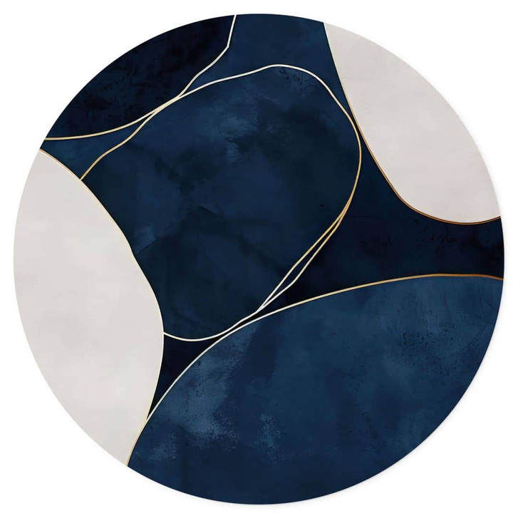 Dieser runde Wandsticker bringt eine harmonische Mischung aus kräftigem Blau, sanftem Weiss und zarten goldenen Linien in dein Zuhause. Die geometrische Komposition wirkt modern und elegant zugleich und verleiht jeder Wand einen stilvollen Look. Die Kombination aus weichen Formen und eleganten Farben schafft eine beruhigende Atmosphäre, die sowohl in modernen als auch in klassischen Räumen Akzente setzt.