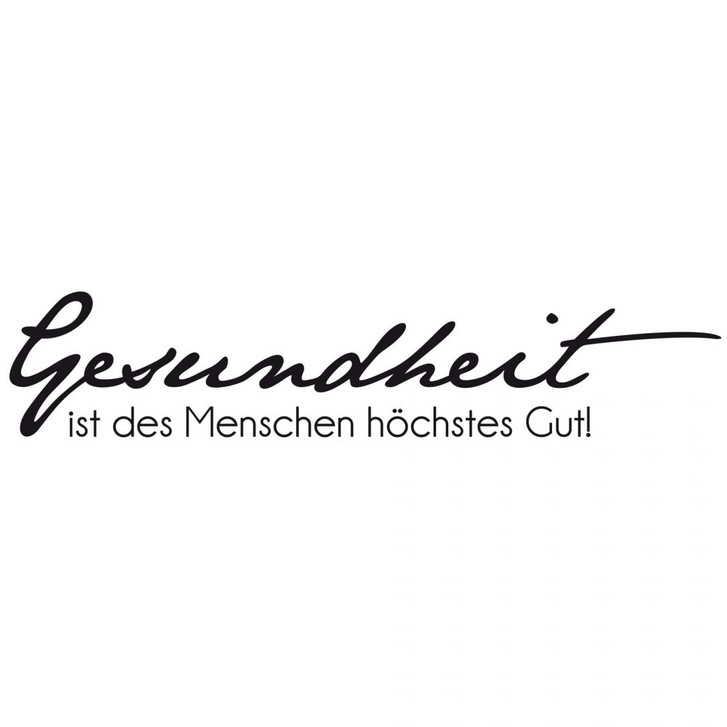 Das Wandtattoo „Gesundheit ist das höchste Gut des Menschen“ vermittelt eine gewisse Wohlfühlatmosphäre, die von Patienten jeden Alters als sehr angenehm empfunden wird. Dieser zweifellos wahre Spruch ist in 5 Grössen und 35 Farben erhältlich, sodass für jede Arztpraxis das passende Design gefunden werden kann. Auch im privaten Bereich kann dieser Wandspruch mit seiner harmonischen Schriftgestaltung eingesetzt werden. Die wahrheitsgetreue Botschaft im Wohn- oder Schlafzimmer wird nicht vergessen und hilft dabei, der Gesunderhaltung mehr Aufmerksamkeit zu schenken – denn Gesundheit ist das höchste Gut eines Menschen.