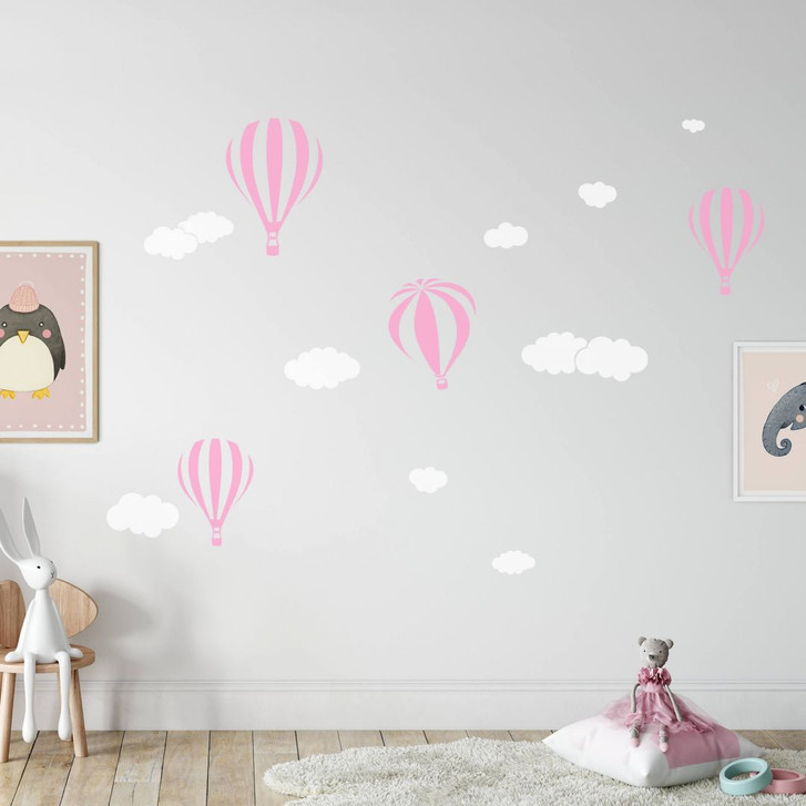 Wandtattoo Heissluftballons mit Wolken (zweifarbig)