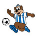 Immer gut drauf – Hertha Bär Herthinho beim Fussballspielen