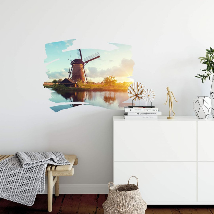Gönne dir dieses Schmuckstück zum Dekorieren und Glücklichsein. Und dieses Foto weckt Fernweh und erweitert deinen Blick – lass dich in eine idyllische Landschaft entführen! Das Motiv stammt aus der Serie Natur, Landschaften und Sonnenuntergänge und strahlt eine ausgeglichene Stimmung aus, die zum Wohlfühlen einlädt. Typisch holländisch und einfach schön – mit der holländischen Windmühle holst du dir ein Stück langer Tradition in dein Zuhause. Der romantische Sonnenuntergang rundet die traumhafte Landschaft harmonisch ab und sorgt für ein entspanntes Wohnambiente. Schliesse für einen Moment die Augen und lass die Seele baumeln! Die Struktur des Wandtattoos eignet sich ideal für viele Wandoberflächen. Selbst Dachschrägen oder verwinkelte Wände lassen sich damit verschönern. Das Beste daran: Diese Dekoration ist kinderleicht anzubringen und hebt mit ihrem blauen und farbenfrohen Design einfach die Stimmung.