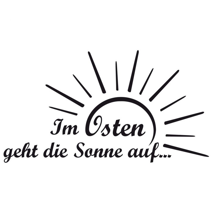 Das Wandtattoo „Die Sonne geht im Osten auf“ bietet einen ganz besonderen Sonnenaufgang. Der dekorative Wandaufkleber ist in 5 Grössen und 35 Farben erhältlich und eignet sich besonders zur Dekoration von Schlafzimmerwänden. Mit diesem Wandsticker kannst du jeden Morgen die Sonne aufgehen lassen, egal an welcher Wand er sich befindet. Die kräftige Sonne und die schöne Schrift dieses Wandtattoos sind genau das Richtige, um gut gelaunt in den Tag zu starten.
