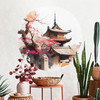 Wandtattoo Japanische Pagode mit Kirschblüten - Jaszke - Rund