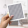 Das Set enthält 120 Kreise (jeweils 1 x 1 cm) auf einem Blatt (14 x 15 cm). Die Kreise können in 35 verschiedenen Farben gewählt werden.