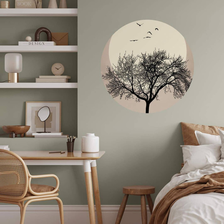 Bäume, Vögel, Sonne – Natur bedeutet Freiheit. Mit dieser minimalistischen Kunst kannst du direkt an der Wand ein Gefühl von Freiheit in deinen Räumen ausstrahlen. Das Naturbild in warmen Naturfarben schafft eine ausgeglichene Stimmung, in der man sich nach einem langen Tag entspannen und die Ruhe geniessen kann. Gönne dir mit diesen beruhigenden Motiven eine kleine Auszeit! Neben dem ausdrucksstarken Design überzeugt das runde Wandtattoo durch hochwertige Materialien und leuchtende Farben.