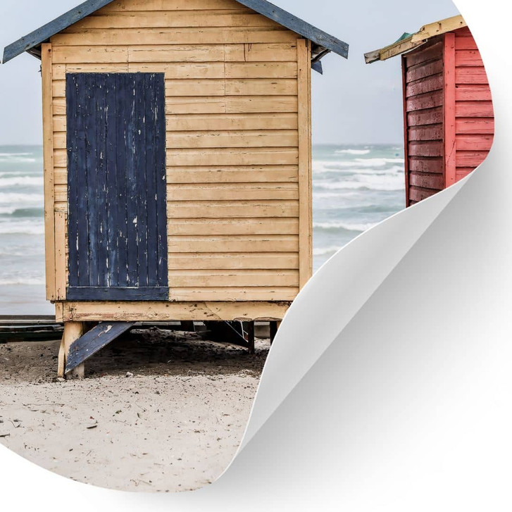 Wandtattoo Küstencharme - Bunte Hütten am Meer - Shot by Clint - Rund