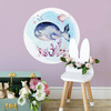 Spielen, lesen und schlafen – der Spielbereich ist der wichtigste Ort für jedes Kind. Hier können sich die Kleinen frei entfalten und wachsen. Und damit sie sich rund um die Uhr wohlfühlen, dürfen kreative Deko-Elemente nicht fehlen. Die Illustration der Künstlerin Kristina Kvilis eignet sich dafür besonders gut. Das runde Wandtattoo zeigt einen kleinen Wal, der verträumt durch das grosse Meer schwimmt.
