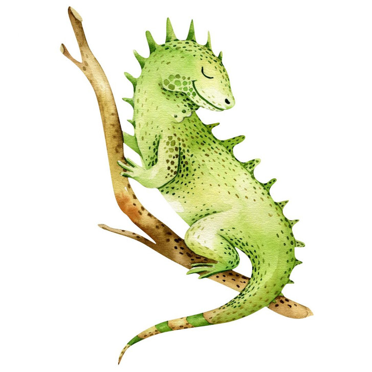 Nicht nur zum Schlafen: Kinder- und Jugendzimmer haben viele Funktionen. Schliesslich werden sie zum Spielen, Lernen und Erwachsenwerden genutzt. Deshalb sind unsere Dekorationen auf diese Anforderungen abgestimmt. Diese Illustration der Künstlerin Kristina Kvilis ist ein kreativer Blickfang an der Wand. Sportlich klettert der grüne Leguan einen Ast hinauf.