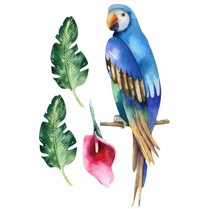 Öffne deine Türen für Exotik und schaffe mit diesem blauen Papagei eine tropische Regenwaldatmosphäre! Die beiden grünen Blätter und die Flamingoblume verleihen deinem Zuhause ausserdem eine farbenfrohe Note. Die Künstlerin Kristina Kvilis erstellt Illustrationen mit viel Liebe zum Detail, wodurch ihre Werke zum Leben erweckt werden. Überzeugt euch selbst und schafft mit diesem farbenfrohen Motiv eine gemütliche Wohnatmosphäre!
