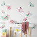 Das Wandtattoo ist in verschiedenen Grössen erhältlich. Die einzelnen blauen und pinkfarbenen Schmetterlinge können nach Belieben an der Wand angeordnet werden.