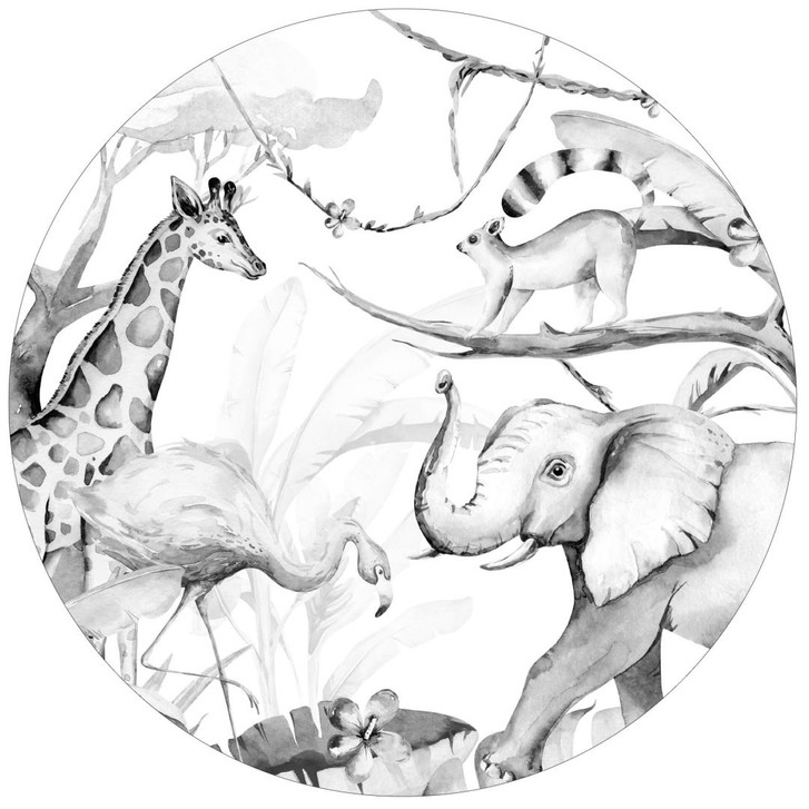 Wandtattoo Kvilis - Tierfreunde im Dschungel - schwarz-weiss - Rund