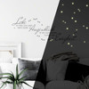 Den Wandspruch gibt es in verschiedenen Grössen. Der Bogen mit den Leuchtaufklebern hat für jede Grösse das Format 21 x 29.7 cm (DIN A4). Darauf befinden sich 95 Sterne. Die Grössen sind: grosse Sterne: 4 cm, mittlere Sterne: 2.7 cm, kleine Sterne: 1.5 cm. Die einzelnen Leuchtaufkleber lassen sich leicht vom Bogen ablösen und nach Belieben an der Wand platzieren. Das Wandtattoo und die Leuchtaufkleber werden auf zwei separaten Bögen geliefert.