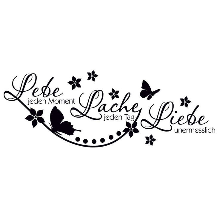 „Lebe jeden Moment – lache jeden Tag – liebe unermesslich“ – diese schönen Botschaften wurden in diesem Wandtattoo verewigt und mit zarten Blumen und Schmetterlingen verziert. Mache diesen Spruch zu deinem Lebensmotto und erlebe mehr Leichtigkeit und Freude in deinem Alltag. Das Wandtattoo „Seize the moment...“ ist mehr als nur ein dekoratives Motiv für deine Wände – es ist eine Lebensweisheit, die dir dabei hilft, ein glückliches und zufriedenes Leben zu führen.