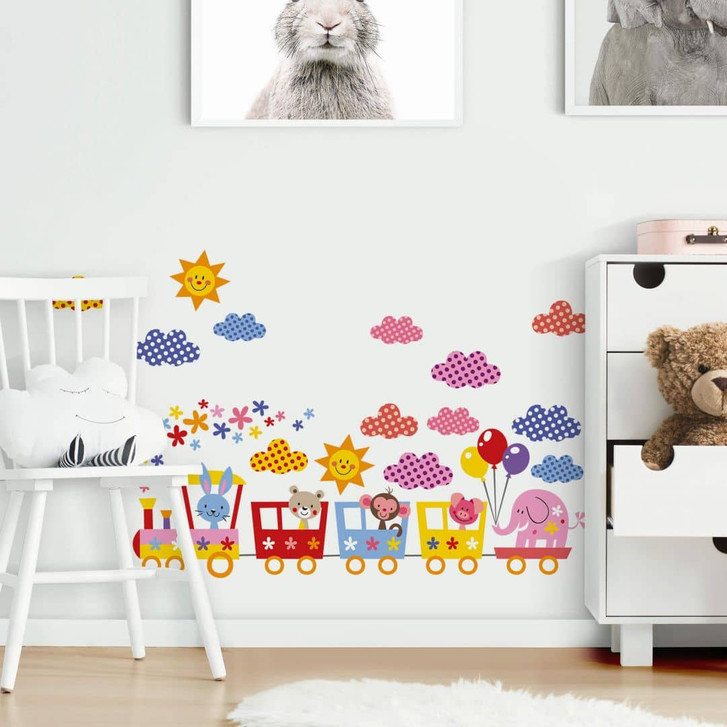Wandtattoo Lustige Tiere im Zug (Muster)
