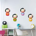 Das Wandtattoo von Michel Agullo zeigt vier kleine bunte „Kokeshi“-Figuren mit Blumen im Haar. Dabei handelt es sich ursprünglich um traditionelles japanisches Spielzeug. Das Wandtattoo ist in verschiedenen Grössen erhältlich.