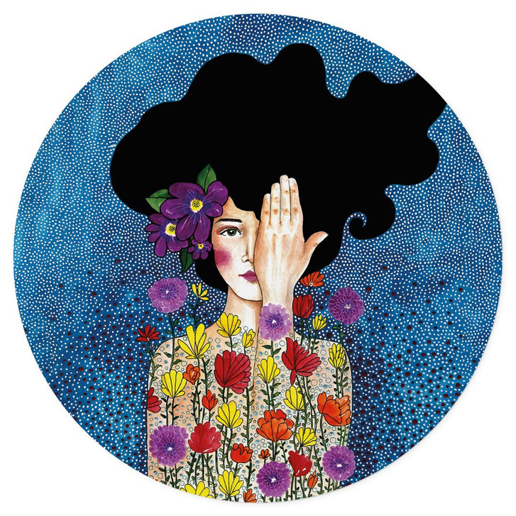 Die Künstlerin Hülya porträtierte eine junge Frau, die eine Hand vor das Auge hält. Die farbenfrohen Blumen und der blaue Hintergrund runden das Bild der selbstbewussten Frau harmonisch ab. Der Schnappschuss wurde mit intensiven Farben dargestellt, die dem Gesamtkunstwerk mehr Ausdruck verleihen. Lass dich von der positiven Ausstrahlung der Frau inspirieren! Dieser Wandsticker verleiht deinem Zuhause einen modernen Touch. Kahle, weisse Wände lassen sich mit wenigen Handgriffen optisch aufwerten. Das Beste daran: Der farbenfrohe Sticker lässt sich auf fast jeder glatten Oberfläche in deinem Zuhause anbringen. Einfacher geht es nicht – ohne aufwendige Vorbereitung werden deine Wände zum Hingucker. Viel Spass beim Dekorieren!