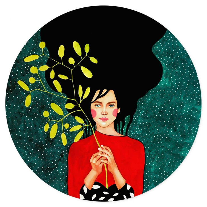 Verpasse deinen Wänden einen modernen Look – mit dieser Wanddekoration triffst du eine stilvolle Wahl. Die Künstlerin Hülya Özdemir hat eine junge Frau porträtiert, die einen gelben Zweig in der Hand hält. In diesem Kunstwerk trifft Schönheit auf Schlichtheit. Der ästhetische Schnappschuss wurde mit kräftigen Farben dargestellt, die starke Emotionen hervorrufen. Lass dich von der positiven Einstellung dieser Frau inspirieren! Der farbenfrohe runde Aufkleber kann auf fast jeder Innenwand angebracht werden. Ob im Zimmer eines Teenagers, im Wohn- oder Schlafzimmer: Mit dem schönen Wandsticker setzt du ausdrucksstarke Akzente! Er ist einfach zu verwenden und spart dir Zeit und Mühe.