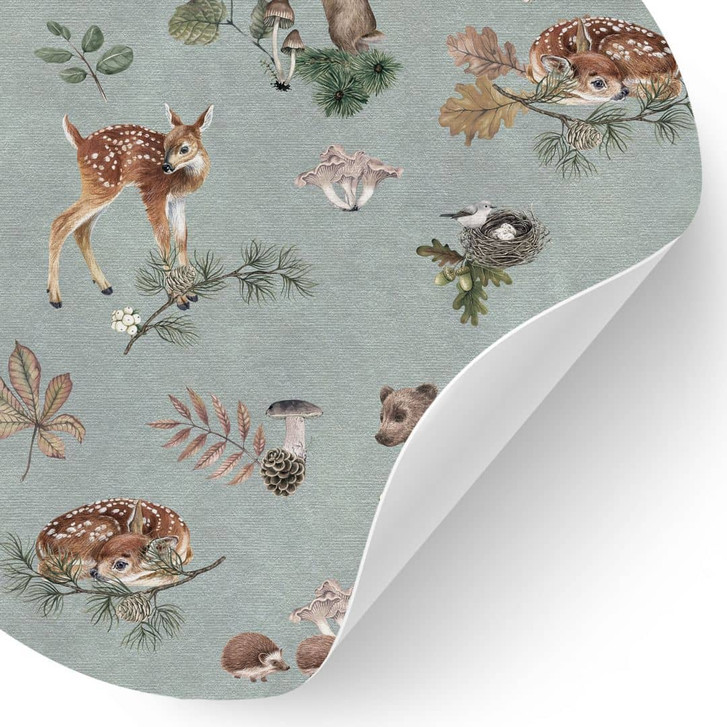 Dieser runde Wandsticker von Kikki Belle bringt die friedliche und zauberhafte Welt des Waldes direkt ins Kinderzimmer. Die detaillierten Abbildungen von Rehkitzen, Bären, Hasen, Igeln und Vögeln sowie liebevoll gestaltete Elemente wie Blätter, Pilze und Nester schaffen eine lebendige Szene. Die harmonischen Blau- und Naturtöne sorgen für eine beruhigende Atmosphäre und fügen sich nahtlos in jede Einrichtung ein.