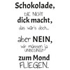 Dieses Wandtattoo mit dem Spruch „Schokolade, die nicht dick macht, das wäre es. Aber nein, wir müssen unbedingt zum Mond fliegen.“ ist in verschiedenen Grössen erhältlich. Es ist eine passende Dekoration für alle Schokoladenliebhaber!