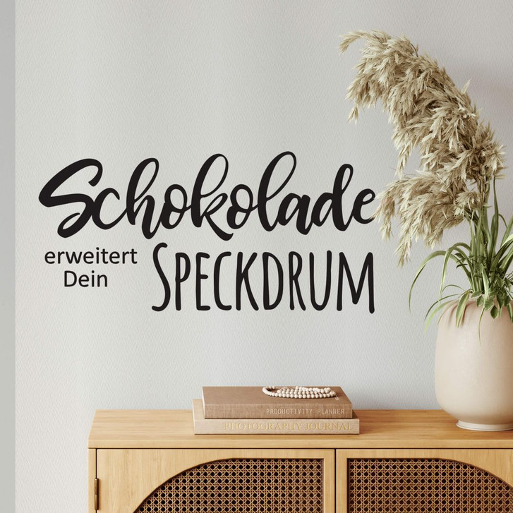 Hier wird nicht nur täglich gekocht und gegessen – die Küche ist oft Treffpunkt für die ganze Familie zum Plaudern und Entspannen. Mit den richtigen Deko-Elementen kann dieser Ort zu einem entspannten und friedlichen Fleckchen im Zuhause werden. Kleiner Aufwand, grosse Wirkung: Mit dieser Deko-Idee schaffst du ein spannendes Detail in deiner Umgebung, das begeistern wird. Setze mit diesem typografischen Wandtattoo spannende Akzente! Dieser humorvolle Spruch hebt sofort die Stimmung. Schokolade macht immer gute Laune und ist ein süsser Trostspender in schwierigen Situationen. Der Spruch „Schokolade erweitert deine Speckröllchen“ ist ein Muss für jeden Naschkatzen und mit ihm erhältst du ein humorvolles Dekoelement, das gute Laune in deinem Zuhause verbreitet. Mit diesem selbstklebenden Wandtattoo lässt sich fast jede Wand verschönern. Die Dekoration ist einfach anzubringen und kann selbst in verwinkelten Räumen eine beeindruckende Wirkung erzielen. Dank der speziellen Beschichtung kommt auch die Farbgebung optimal zur Geltung.