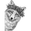 Wandtattoo Schwarz-weisser Fuchs mit Blumenkranz - Korenkova