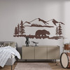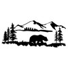Wandsticker in deiner Lieblingsfarbe: Silhouette eines Bären in einer Berglandschaft mit Bäumen
