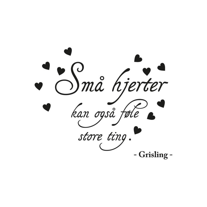 Mit dem süssen Wandtattoo Sma hjerter... Wandtattoo kannst du ein dänisches Zitat der Figur Grisling (Ferkel) aus der Serie „Pu, der Bär“ in jedes Kinder- oder Jugendzimmer bringen! Das Wandtattoo ist in verschiedenen Farben und Grössen erhältlich.